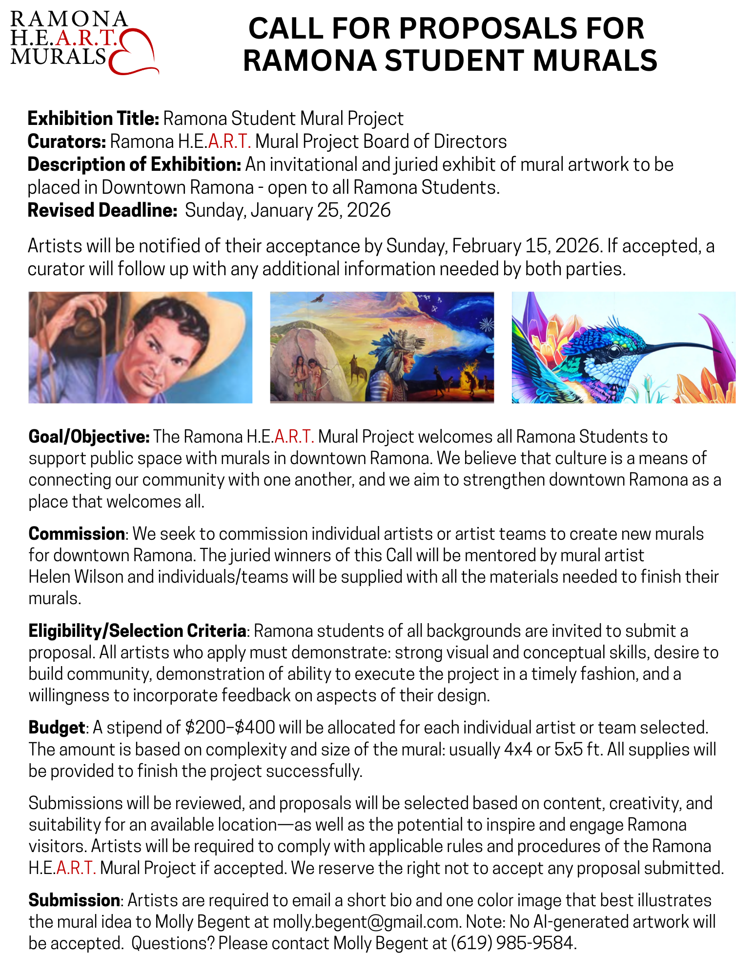 Looking for more details about the Student Mural Project? Note that the new submission deadline is Sunday, January 25, 2026.