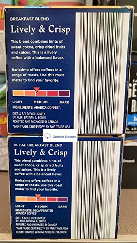 Barissimo Coffee Breakfast Blend & DECAF Breakfast Blend Medium Roast 12 Cups 3.81oz 108g (Two Boxes)