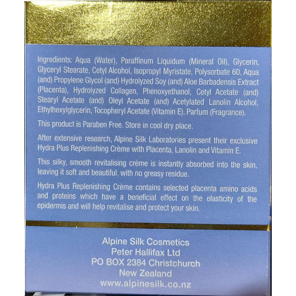 Intensive Hydration with Premium New Zealand Skincare. Restore softness and hydration with Alpine Silk Gold Hydra Plus Replenishing Cream, a luxurious moisturizing cream designed to deeply hydrate and help maintain healthy-looking skin. The nourishing formula combines plant placenta amino acids, hydrolyzed collagen, aloe extract, glycerin, and Vitamin E to help support skin elasticity while improving moisture retention. This lightweight yet rich cream absorbs quickly, helping replenish hydration without leaving a greasy residue. Skin feels smoother, softer, and refreshed after each use. The carefully balanced formula helps maintain moisture levels while supporting the appearance of firmer, more supple skin. With regular use, skin looks revitalized and feels deeply nourished. Crafted in New Zealand, this premium skincare cream is paraben-free and suitable for daily use as part of your regular skincare routine.